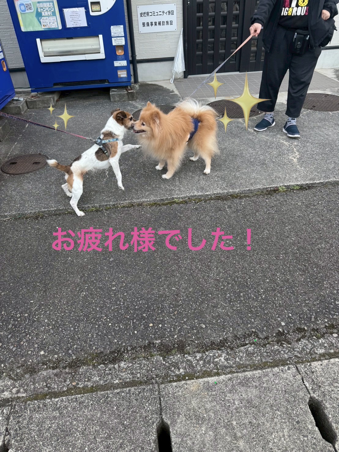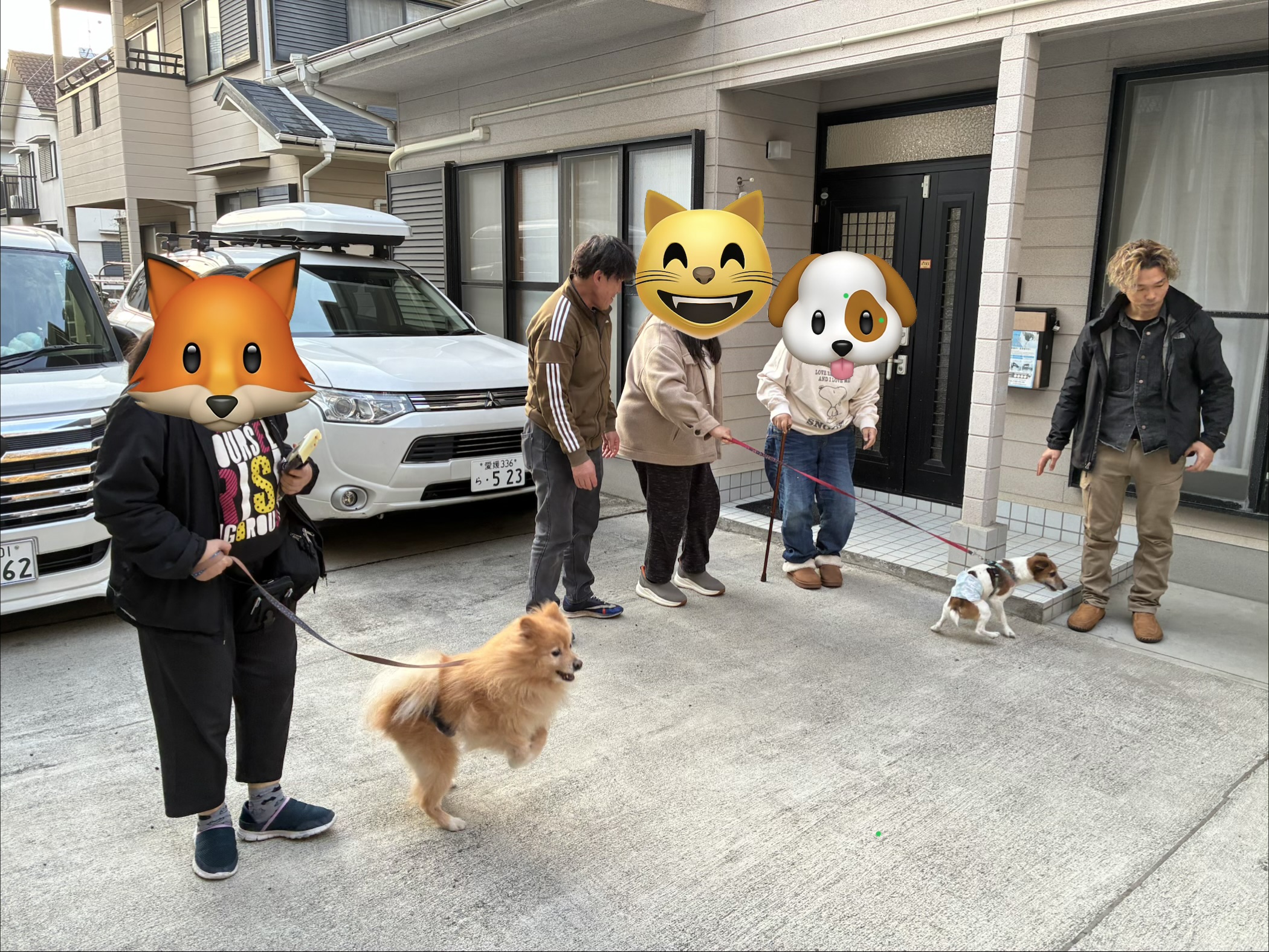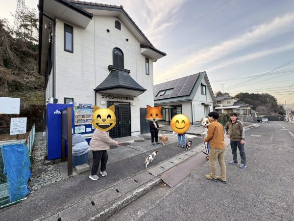 先日、入居者さん全員と愛犬も一緒に避難訓練を行いました。 安全に配慮しながら、職員と駐車場に集合し、点呼確認。全員で避難開始です。 避難場所場まで落ち着いて歩いて移動しました。 緊急時の動物を連れての避難は、入居者さん自身の安全確保やペットをどのように避難させるかなど、確認が必要と実感しました。 皆さん安全に無事避難できました! 大変お疲れさまでした。愛犬同士のコミュニケーションもとれました。